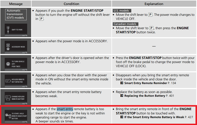 Smart Entry System Light Honda Accord